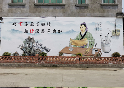 溫州市墨客墻繪藝術(shù)有限公司主要從事有個(gè)性有創(chuàng)意的家居裝飾墻繪、幼兒園卡通彩繪、KTV酒吧主題墻繪、3D立體墻繪、習(xí)哥彭姐文化大革命的城鄉(xiāng)文化宣傳墻繪等,當(dāng)然還有我們獨(dú)歩武林的高墻墻繪藝術(shù)!畫高墻有時(shí)一個(gè)頭像就有兩米,不僅僅是大了型不好把握,一般習(xí)慣在陸地作戰(zhàn)的繪畫者往往上去后會(huì)讓你唱起一首歌:“三月里的小雨,淅瀝瀝瀝......瀝瀝……淅瀝瀝瀝下個(gè)不?!本褪谴魃夏虿粷?,他們也會(huì)在上面演示帕金森。我們施工時(shí)下面觀看的人如少女初戀般心跳,欣賞的人似紂王品酒觀妲己跳舞一樣陶醉。連村中惡犬也為我們搖尾吶喊:“……墨客墻繪……神勇無畏!
